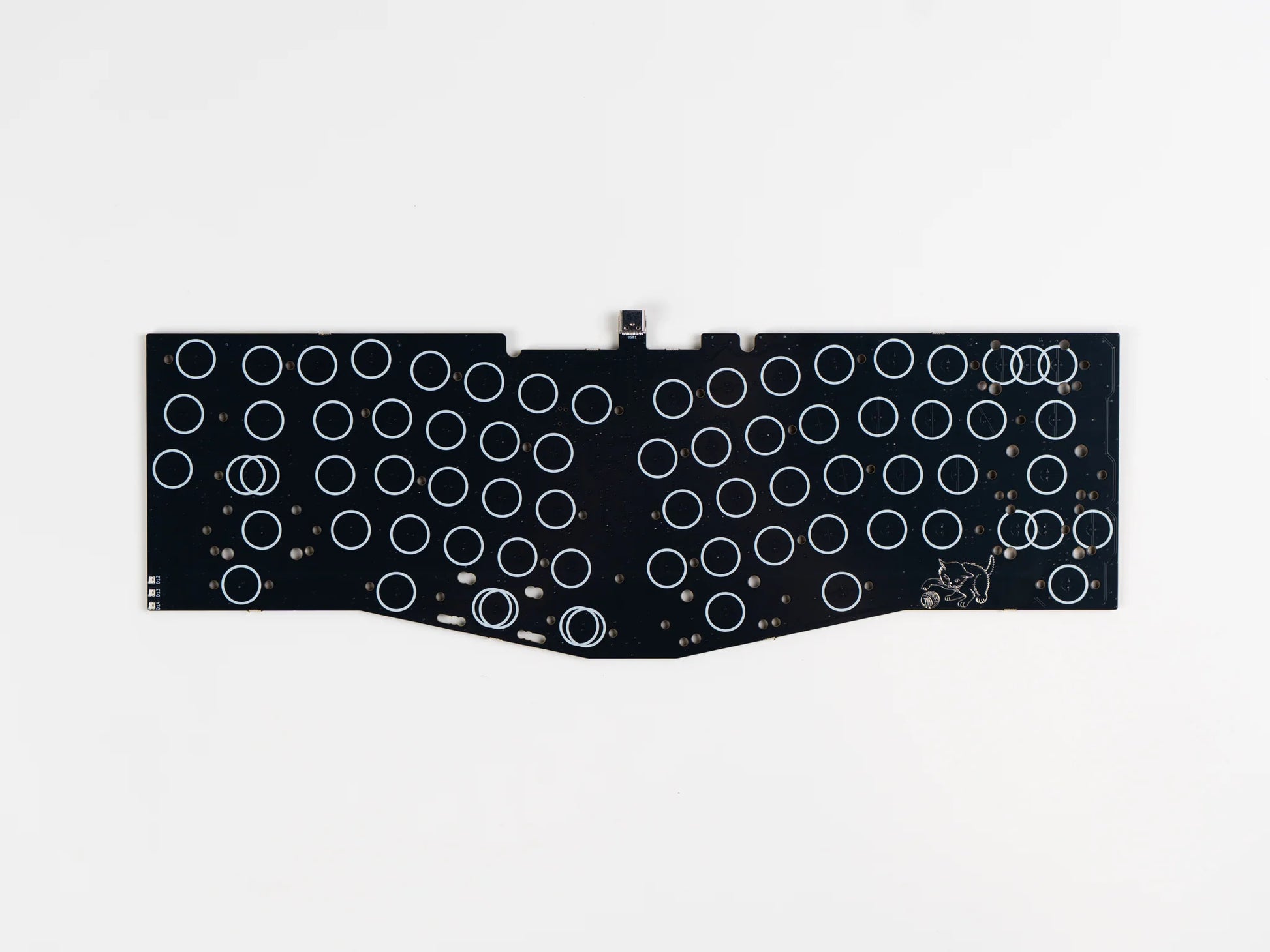 At a glance- Standard Alice layout PCB with centered onboard USB-C and RGB underglow