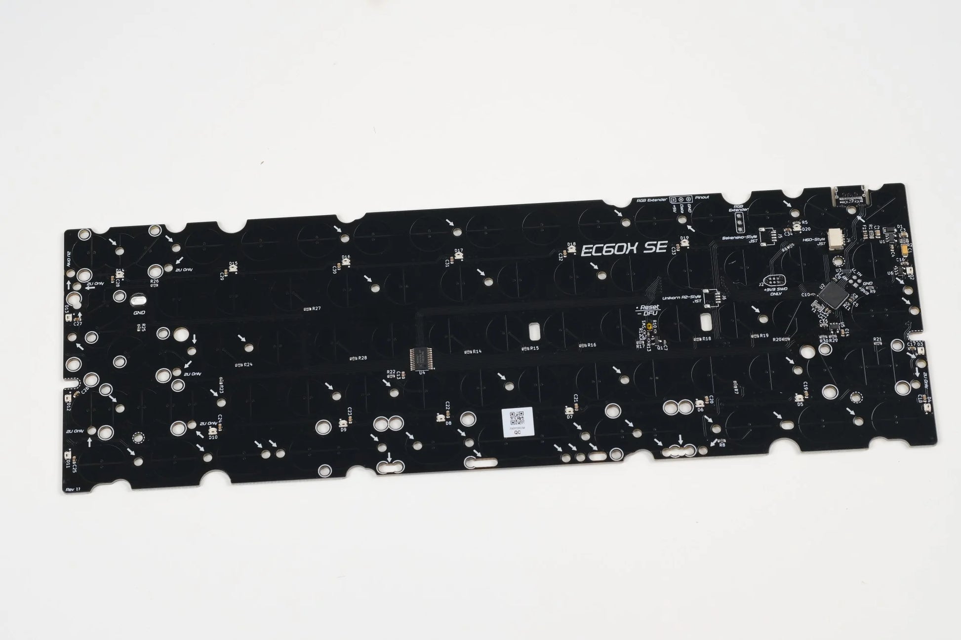 - USB-C on PCB in the "standard 60% location" used by most 60% tray mounted keyboards